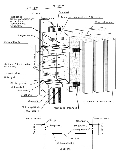Kasettenwand mit Trapezblechaussenschale